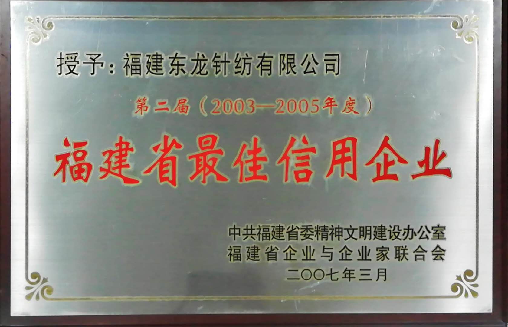 福建省最佳信用企業/2018-09-04